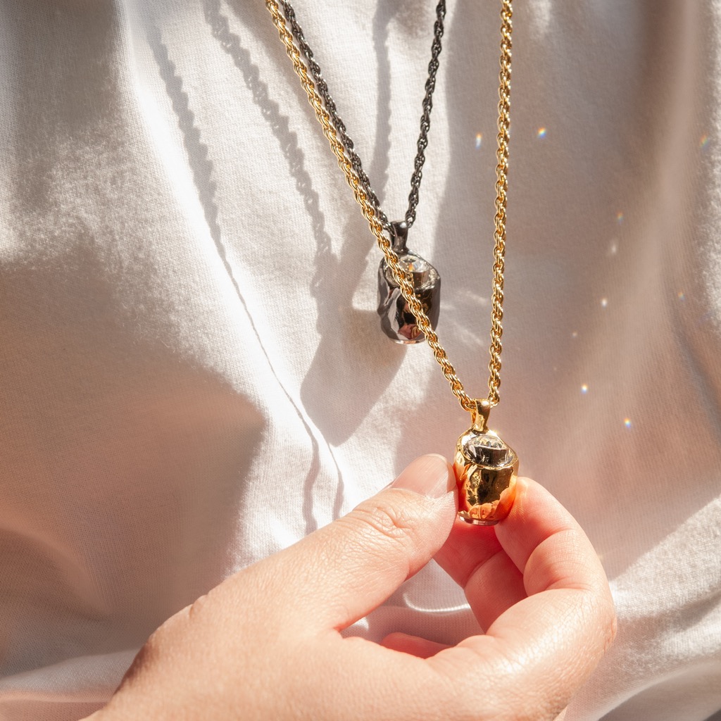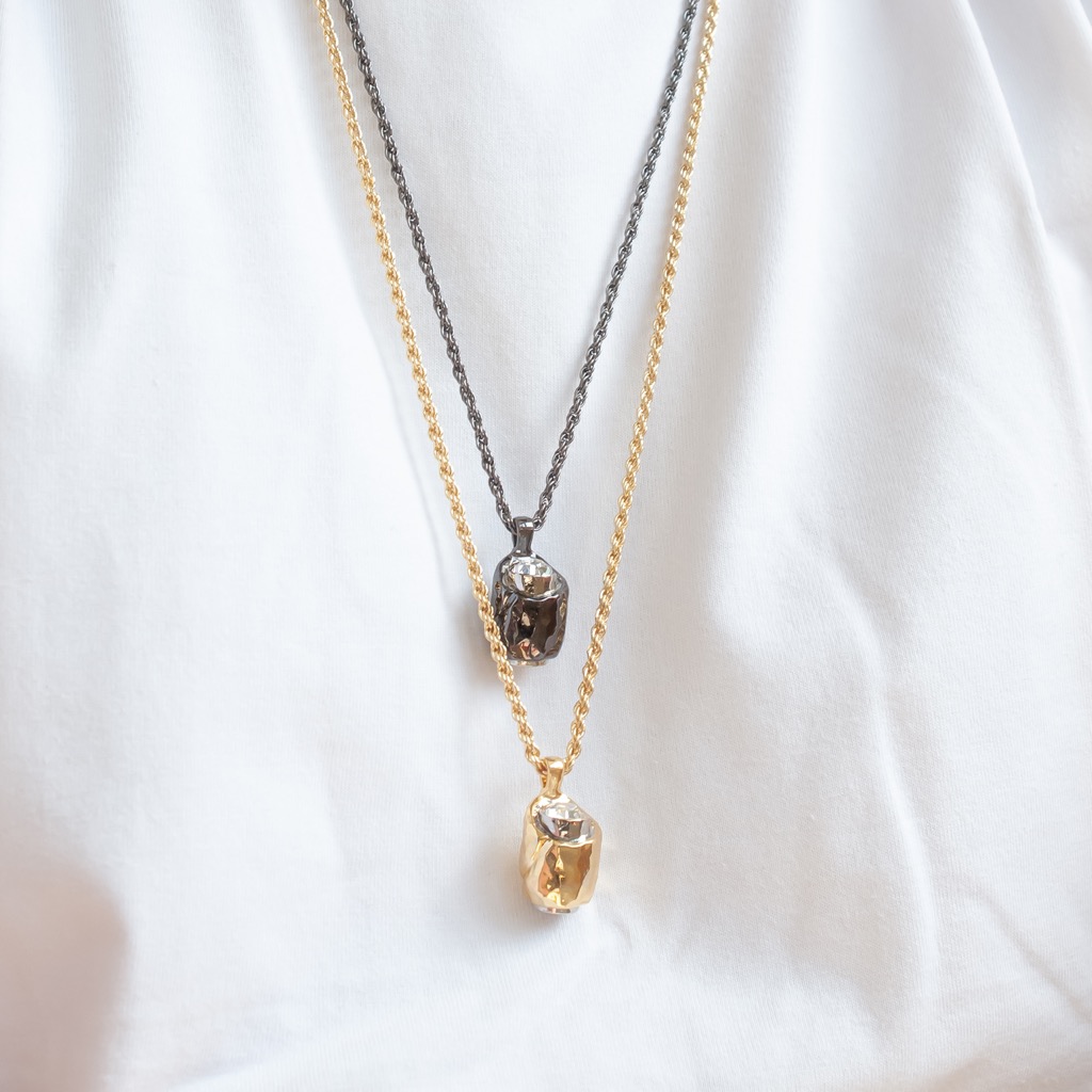 檳能項鍊的包葉款使用1公分大的石施華洛世奇,讓您在配戴的時候隨時隨地光芒萬丈!